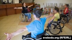 Раз на тыдзень Марына Булатоўская праводзіць заняткі «на ножках», як яна гэта называе, і на інвалідных вазках. Займацца прыходзяць людзі з абмежаванымі фізычнымі або інтэлектуальнымі магчымасьцямі — выхаванцы клюбнага дому «Крылы надзеі» для людзей з псыхічнымі захворваньнямі.